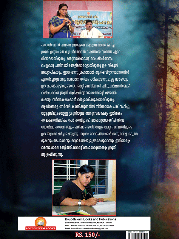 കാസർഗോഡ് ഹവ്യക്ക ബ്രാഹ്മണ കുടുംബത്തിൽ ജനിച്ച ശ്രുതി ഇസ്ലാം മത സ്വാധീനത്താൽ റഹ്മത്തായ വാർത്ത ഏറെ വിവാദമായിരുന്നു. തെറ്റിധരിക്കപ്പെട്ട് മത പരിവർത്തനം ചെയ്യപ്പെട്ട പതിനായിരങ്ങളിൽ ഒരാളായിരുന്നു ഈ സ്ക്കൂൾ അദ്ധ്യാപികയും. ഈശ്വരാനുഗ്രഹത്താൽ ആർഷ വിദ്ധ്യാ സമാജത്തിൽ എത്തിചേരുവാനും സനാതന ധർമ്മം പഠിക്കുവാനുമുള്ള സൗഭാഗ്യം ഈ പെൺകുട്ടിക്കുണ്ടായി. തെറ്റ് മനസിലാക്കി ഹിന്ദു ധർമ്മത്തിലേക്ക് തിരിച്ചെത്തിയ ശ്രുതി ആർഷവിദ്യാ സമാജത്തിൻ്റെ മുഴുവൻ സമയ പ്രവർത്തകയാവാൻ തീരുമാനിക്കുകയായിരുന്നു. ആയിരങ്ങളെ നേർവഴി കാണിക്കുന്നതിൽ നിർണായക പങ്ക് വഹിച്ചു. യൂട്യൂബിലൂടെ ശ്രുതിയുടെ അനുഭവ സാക്ഷ്യം ഇതിനകം 40 ലക്ഷം പേർ കണ്ടിട്ടുണ്ട്. മതം മാറ്റങ്ങൾക്ക് പിന്നിലെ യഥാർത്ഥ കാരണങ്ങളും പരിഹാര മാർഗങ്ങളും തന്റ ഗ്രന്ഥത്തിലൂടെ ഈ യുവതി ചർച്ച ചെയ്യുന്നു . സ്വന്തം മാതാപിതാക്കൾ അനുഭവിച്ച കടുത്ത ദുഃഖവും അപമാനവും മറ്റൊരാൾക്കു മുണ്ടാകരുതെന്നും ഇനിയാരും തന്നെ പോലെ തെറ്റുധരിക്കപ്പെട്ട് മതം മാറരുതെന്നും ശ്രുതി ആഗ്രഹിക്കുന്നു.